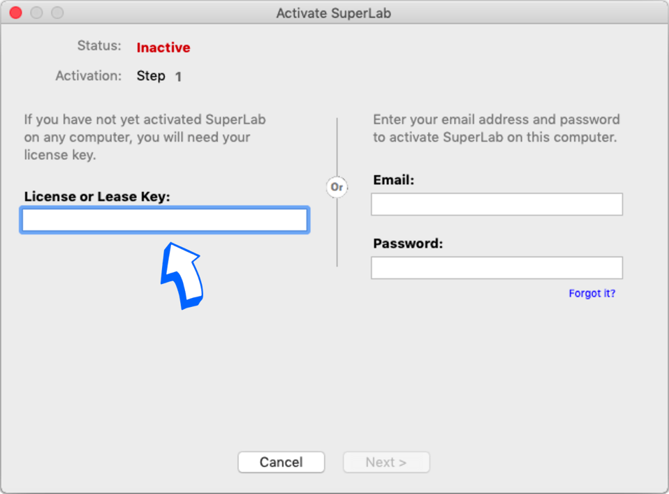 This is a feature that’s built into SuperLab. It allows any user that has two or more licenses to provide someone else with a temporary license, e.g. a professor that wants to loan a license to a student. Cedrus will be using this feature to provide temporary licenses to all.