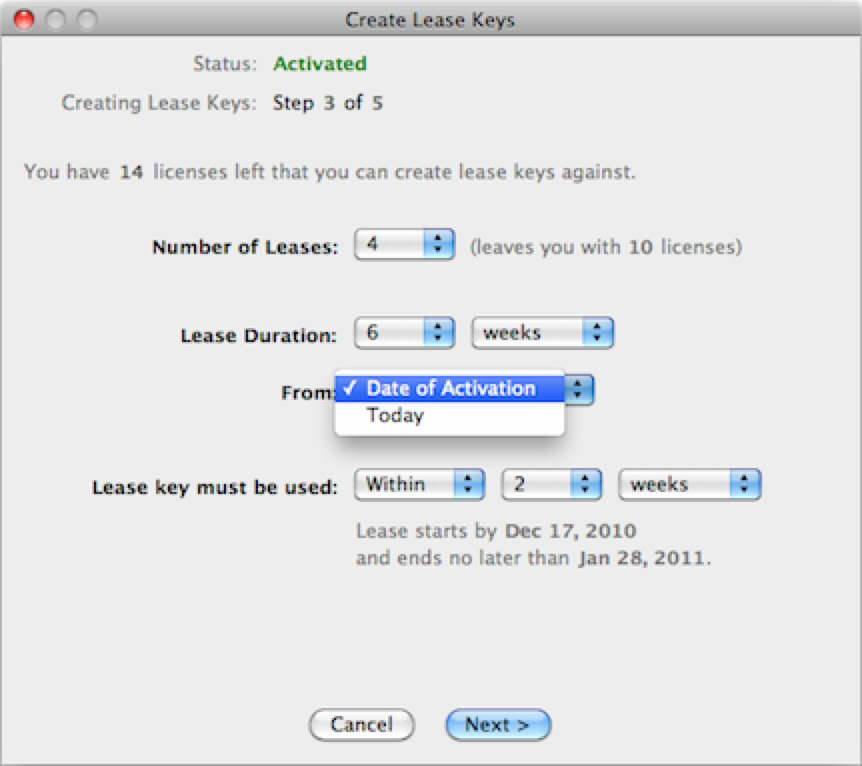 When the leases expire, they are automatically returned to your available pool of licenses and are ready for re-use. Nifty! Also nifty is the fact that you won’t care if you are issuing a lease to a Mac user or a Windows user: licenses are now fully cross-platform.