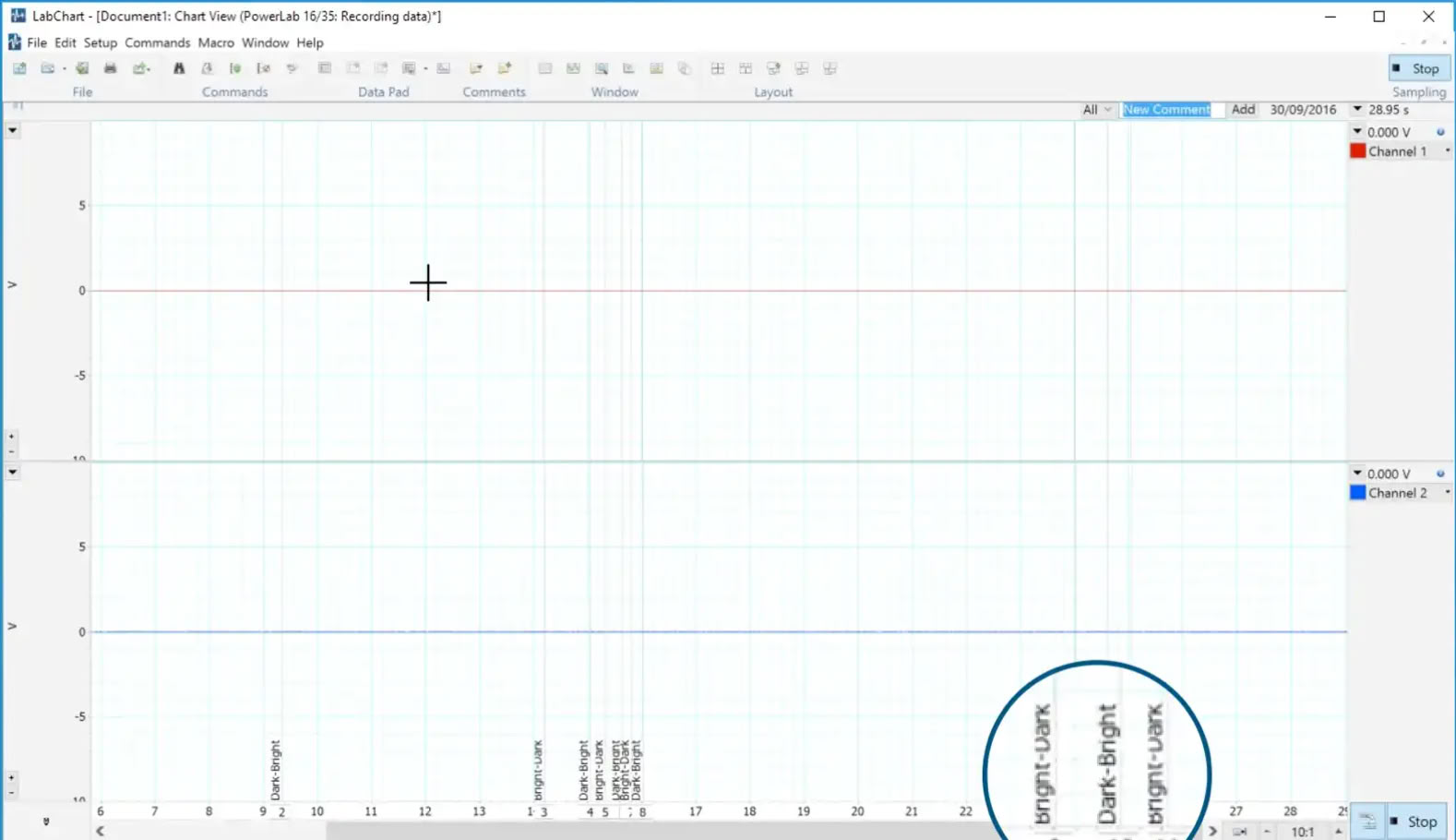 Events markers appear as in LabChart software: