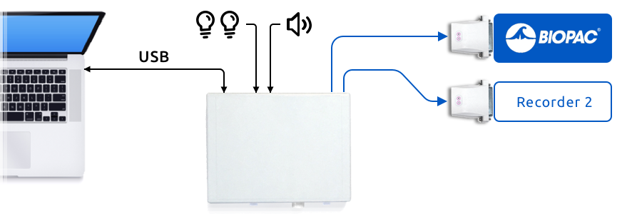 It draws its power from your computer via USB. c-pod delivers 8 bits of event markers reliably and asynchronously.