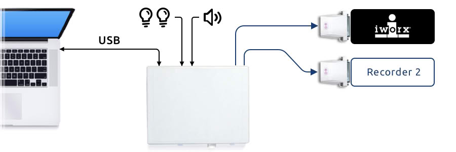 It draws its power from your computer via USB. c-pod delivers 8 bits of event markers reliably and asynchronously.