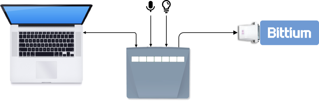 The response pad draws its power from your computer via USB. When a key is pressed, information is sent at the same time via USB to the computer and via m-pod to Bittium.