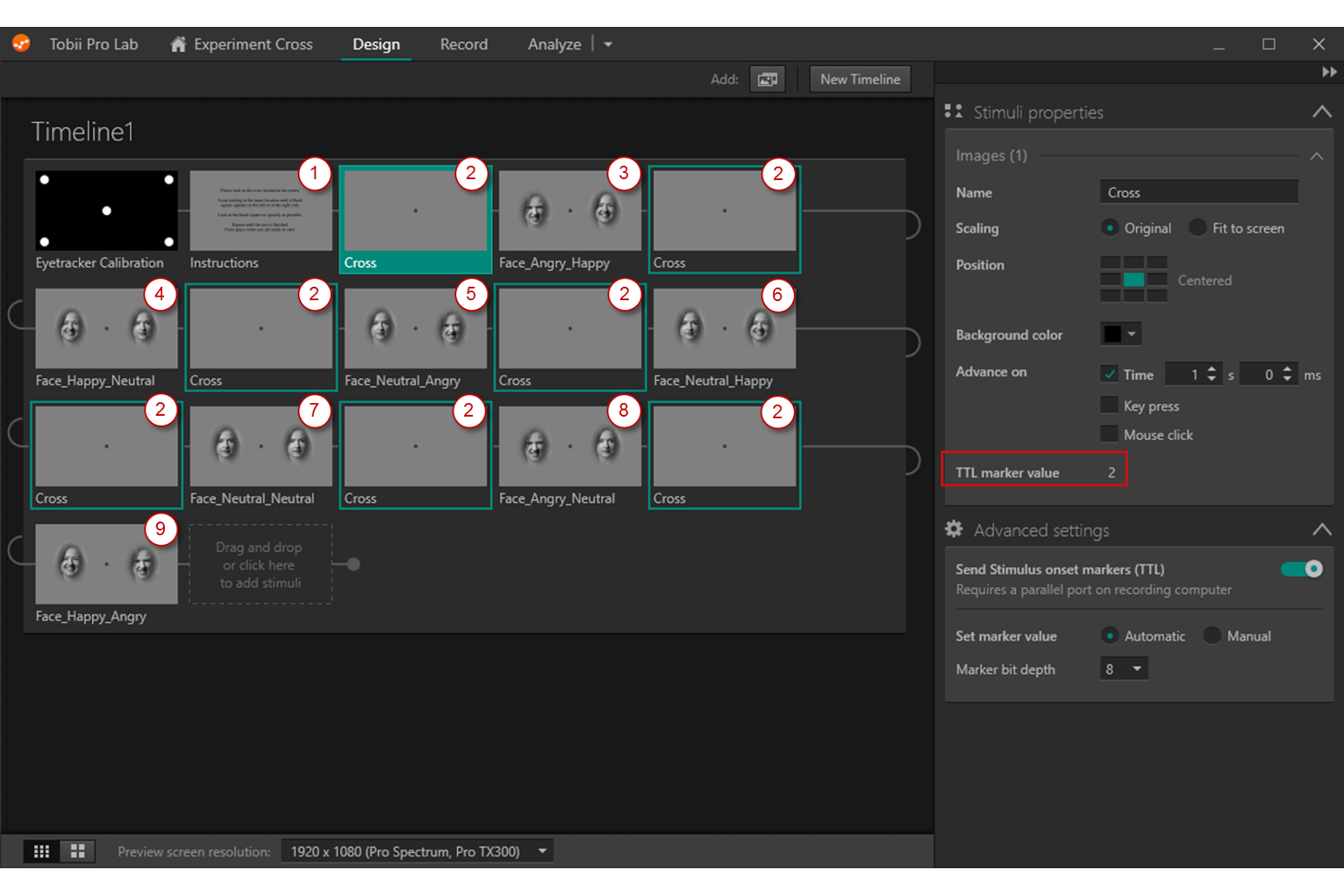 Events markers are collected in Tobii Lab Pro: