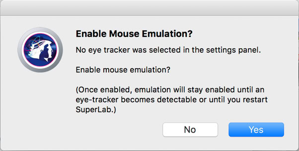 No eye tracker? no problem. SuperLab X6 understands that the eye tracker hardware may not be always available and automatically offers to let you use the mouse cursor instead. This lets you continue to work on an experiment anytime, anywhere.
