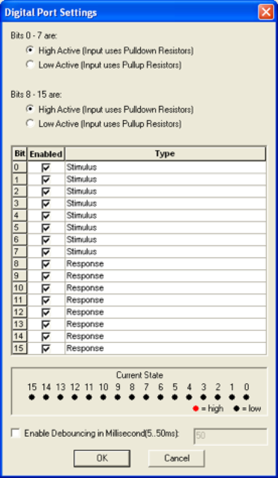 However, you may find that adjusting some settings can make your data analysis easier later on. To do so, click on the Amplifier menu and choose Digital Port Settings…. Recorder displays the following dialog: