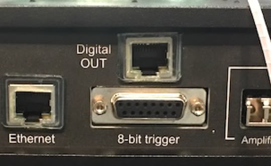 m-pod for NeurOne plugs directly into the “8-bit trigger” connector on the back of the Bittium NeurOne recorder.