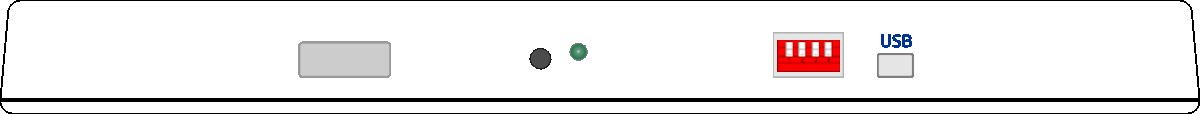 Setting your RB-x40 response pad to use the SRB Model 200A protocol involves flipping a switch or two on the back your response pad, illustrated below. You will find a set of four switches next to the USB connector: