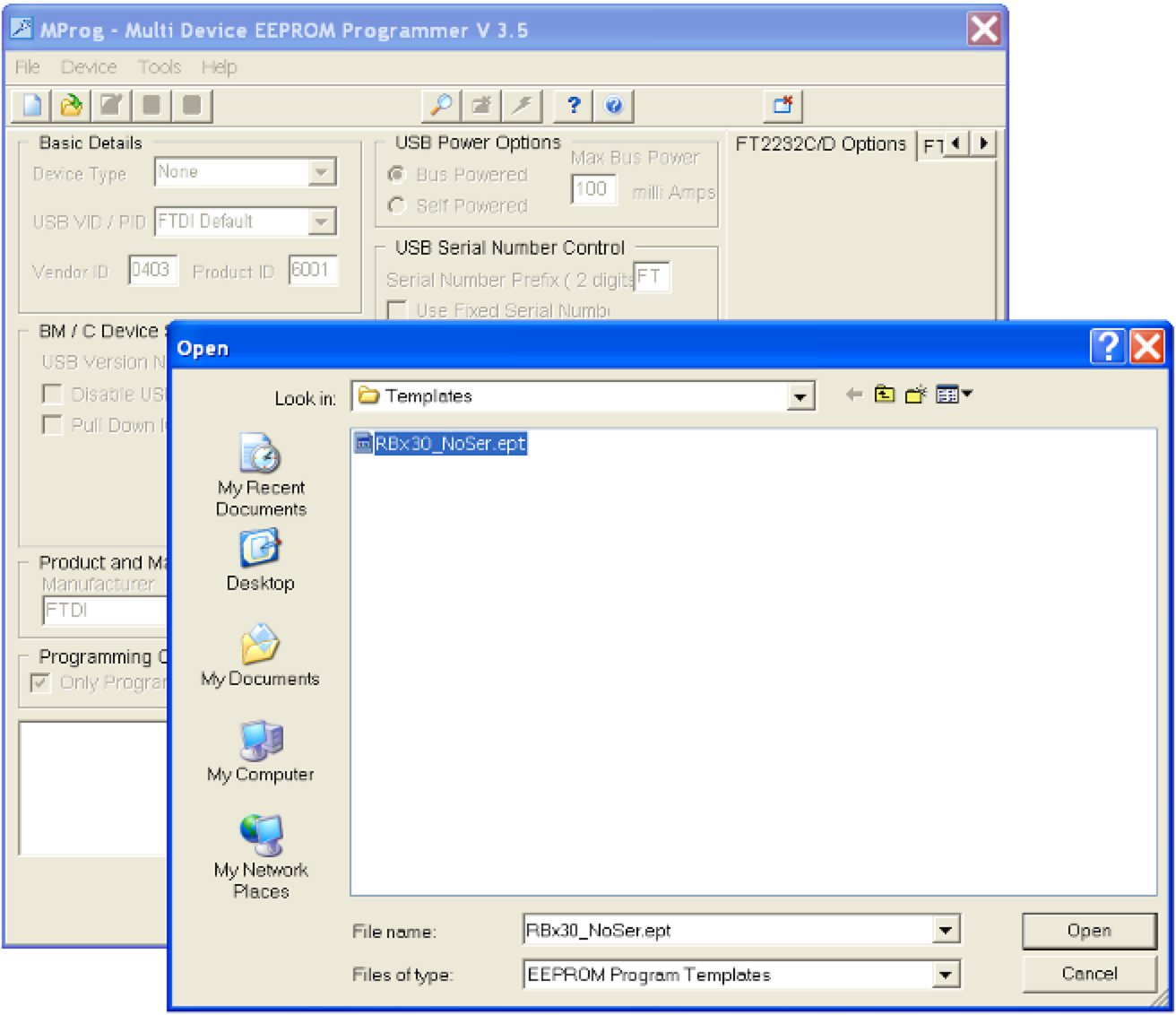 e. Select “RBx30_NoSer.ept” then click on Open: