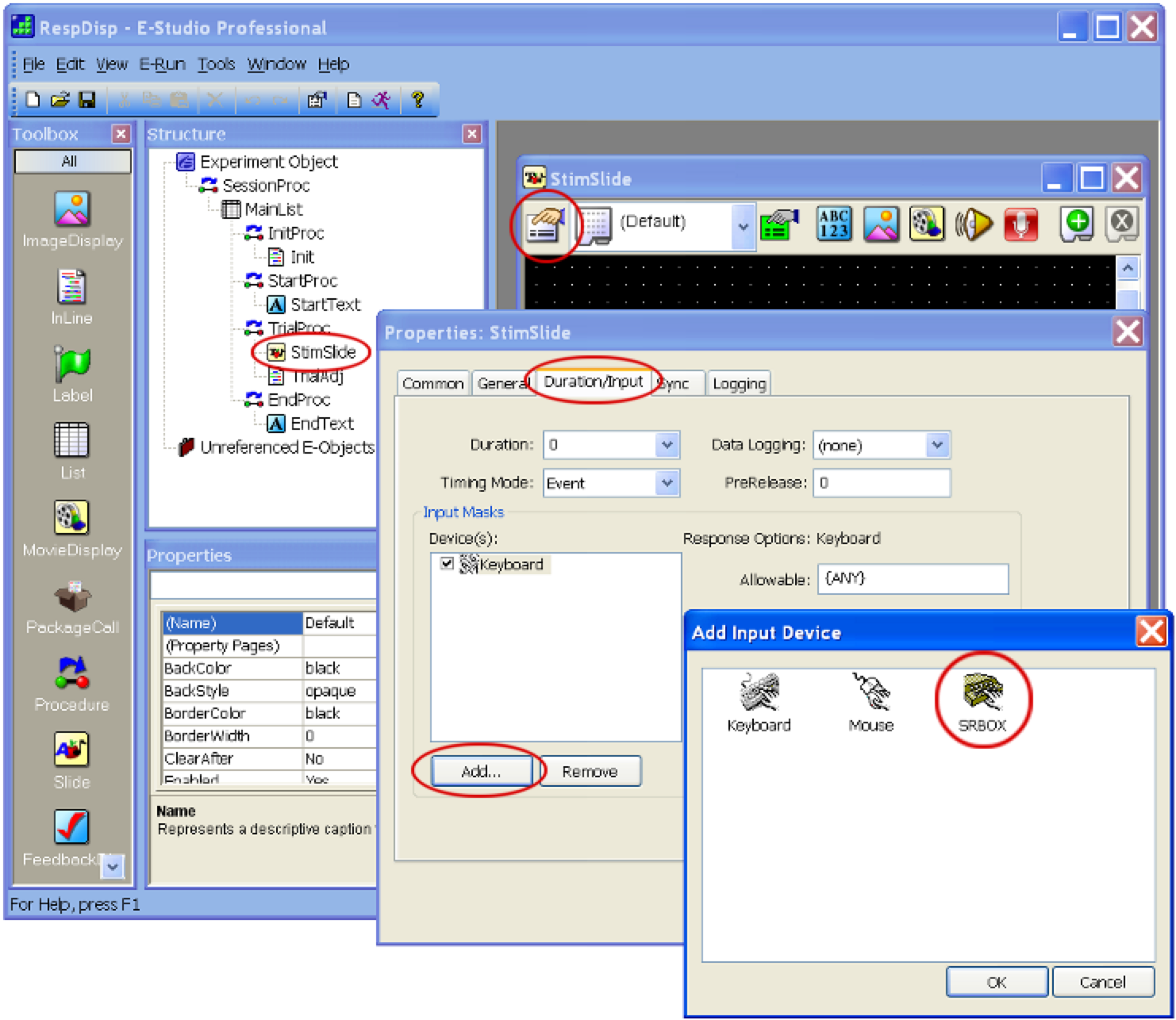 Back in the StimSlide Properties dialog, you can set the input properties as needed by your experiment, e.g. Time Limit and End Action.