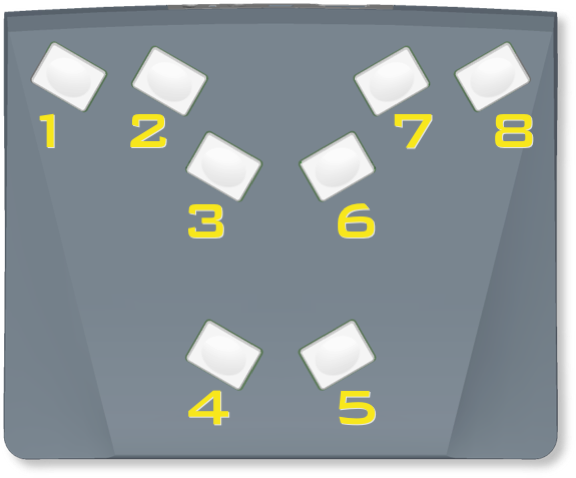The SRB Model 200A has five push buttons and voice key (shown below as “vk”). This limits that maximum number of keys that can be used with E-Prime to six keys. Here is how they correspond to the various Riponda models: