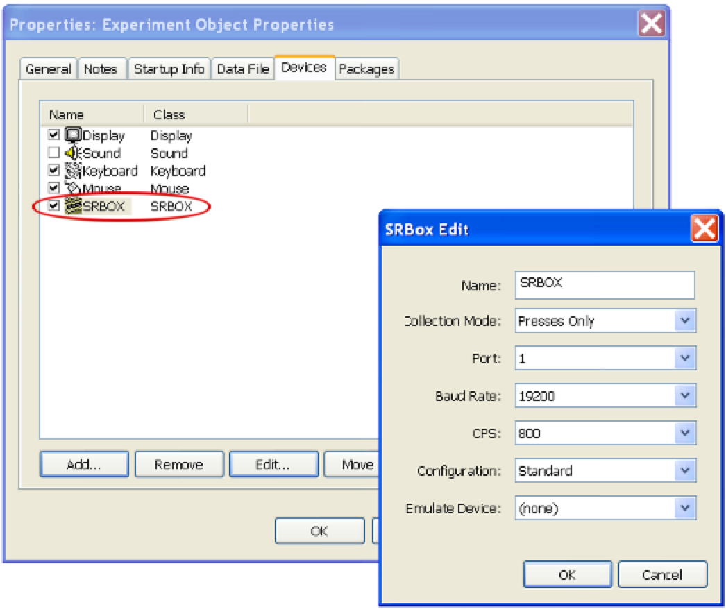 Back in the Experiment Object’s Properties dialog, you will now see “SRBOX” listed. Double-click on it to edit its properties; the SRBox Edit dialog will appear.
