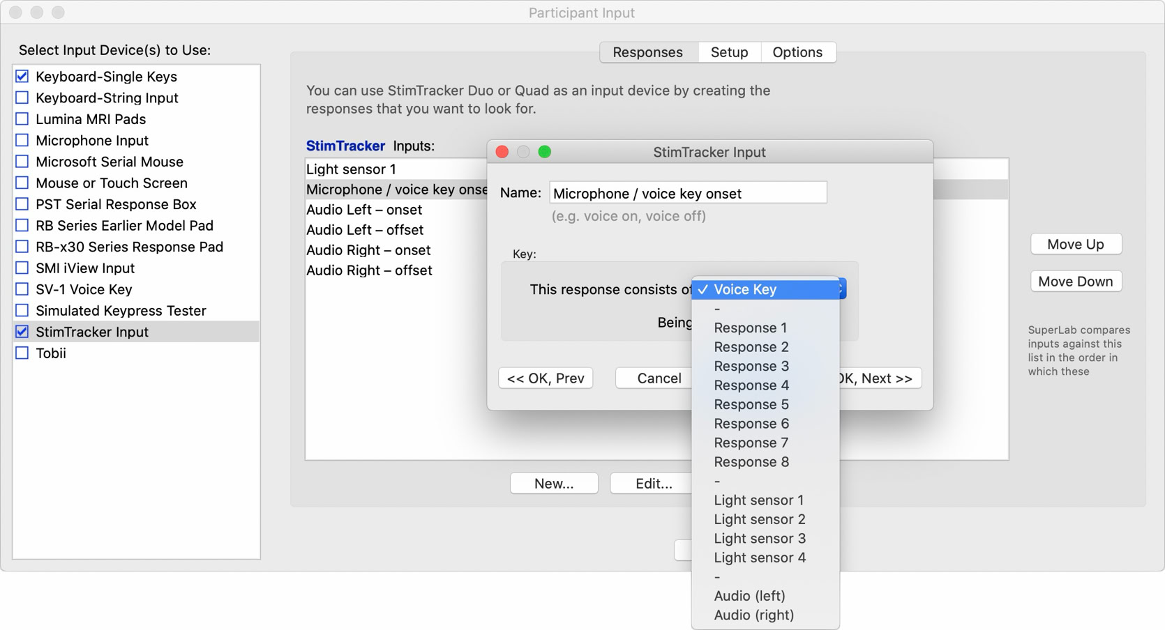 A practical application is for the stimulus presentation software to use the voice key feature when a microphone is plugged into StimTracker Quad. But an application may also want to record other behavioral data.