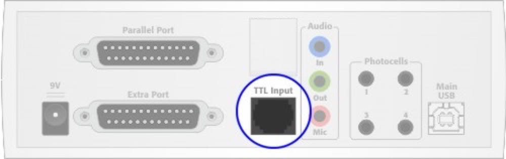 The TTL Input connector on the back of StimTracker can monitor up to six digital/TTL input lines and generate event markers when the state changes on these lines. This support page provides the details.