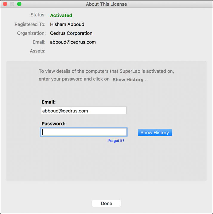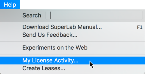 You can view licensing information from within SuperLab. This is particularly useful if you have purchased more than one SuperLab license.