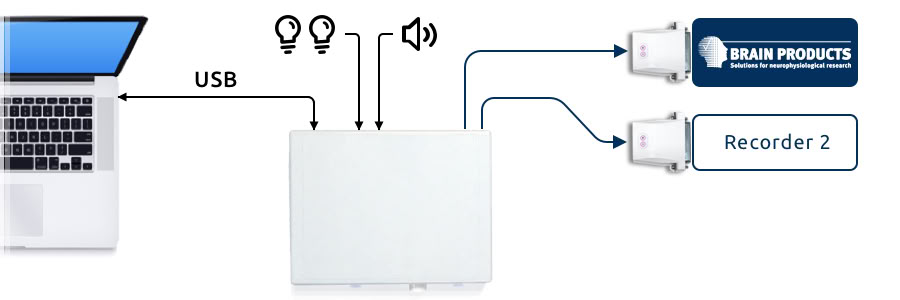 It draws its power from your computer via USB. c-pod delivers 8 bits of event markers reliably and asynchronously.