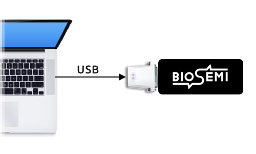 The response pad draws its power from your computer via USB. When a key is pressed, information is sent at the same time via USB to the computer and via m-pod to BioSemi.