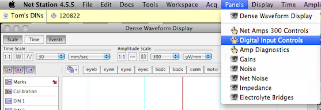 You are now ready to acquire data. DINs will then appear and be recorded with a duration that corresponds to the duration of the event codes sent via c-pod from the stimulus presentation computer.