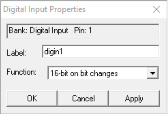 In the Digital Input Properties dialog, select the option “16-bit on bit changes”.