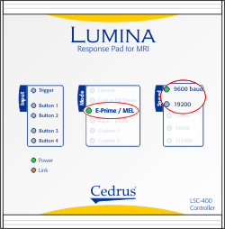 The baud rate, or speed, settings in E-Prime and the response pad must also match. E-Prime supports 9600 and 19200 baud, as does the response pad. It does not matter which baud rate you use as long as they match, but 19200 is recommended.