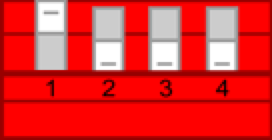 There are four switches next to the USB connector on the back of the response pad. When shipped, all four switches are in the down position. To set it to keyboard mode, flip switch 1 up, as shown on the right.