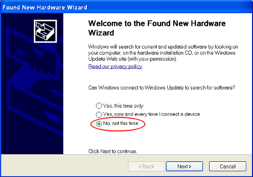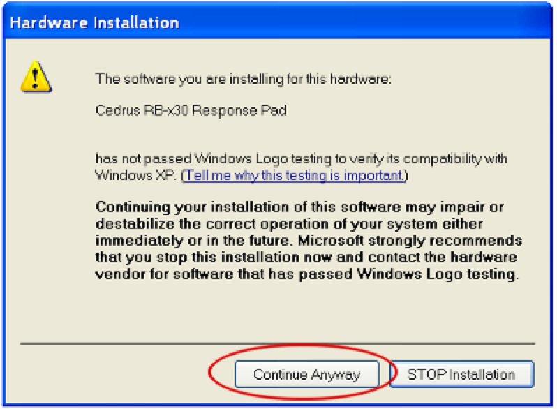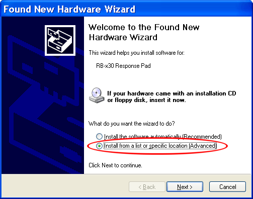Plug your RB Series response pad into your Windows computer. Unless you skipped Step 3 above, you will see the following dialog (screen):