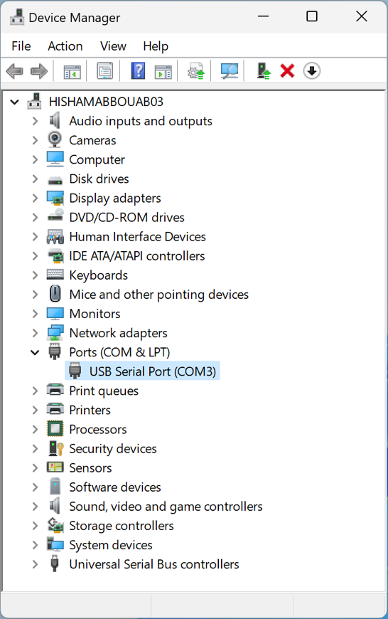 Your Cedrus USB product should appear in the list as serial USB devices, e.g.“USB Serial Port” along with the COM port number that was assigned to it by Windows. To double-check that the entry in the “Ports (COM & LPT)” section is your Cedrus response pad, unplug the response pad, wait a few seconds, and re-plug it. As you do this, you should see the entry under “Ports (COM & LPT)” disappear and then reappear.