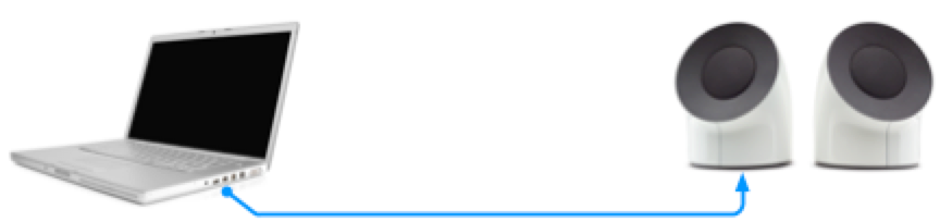 You will need the (included) “Audio Pass-Through Cable” to connect StimTracker to the speakers. Connect this cable between the audio output on your computer and the “Audio In” on StimTracker. Then plug the speakers into the “Audio Out” connector.