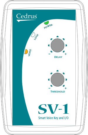 SV-1 provides two adjustment dials: Threshold and Delay. These assist you in setting up SV-1 optimally for detecting a voice key.